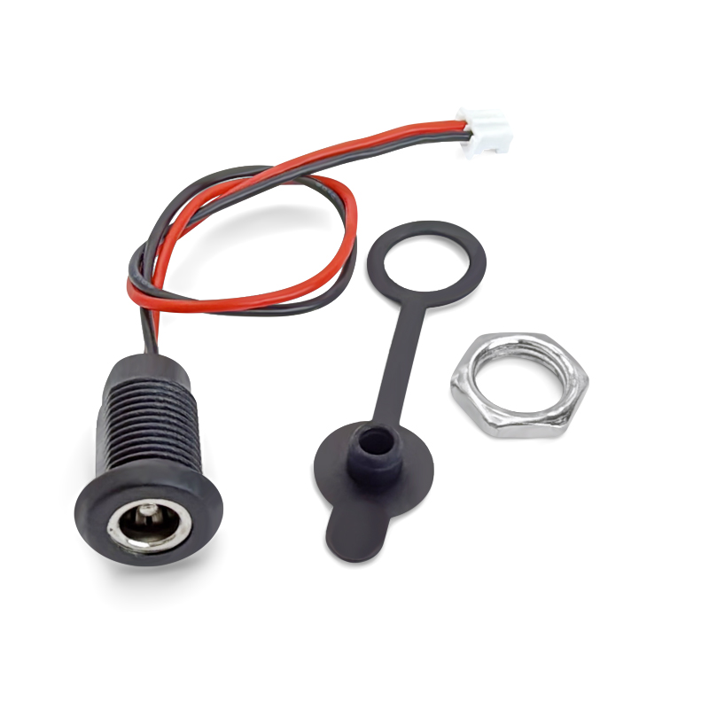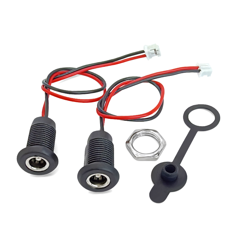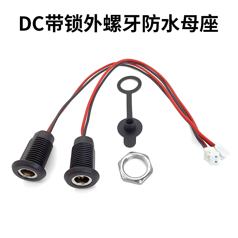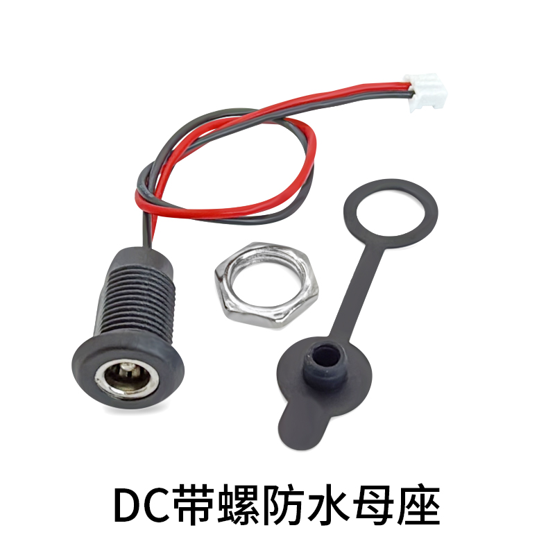 DC5521MM防水充电母座带线净水器电源插座圆孔接头直流螺纹充电座