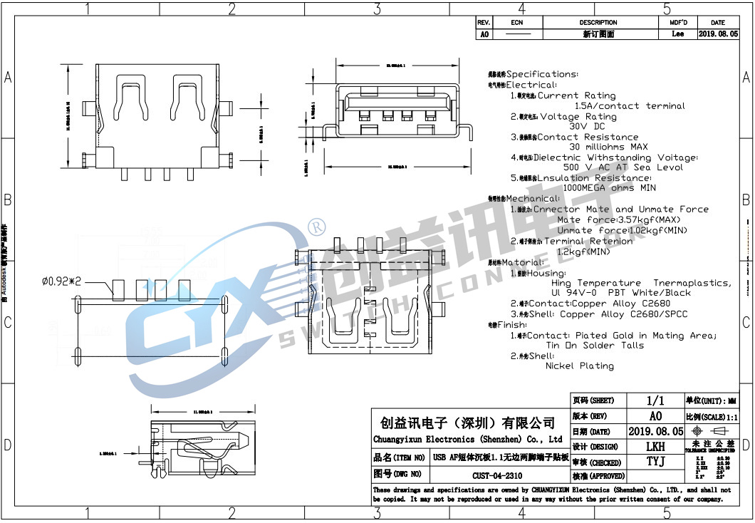 声明 :   关于产品规格、参数、寿命、工作温度、手感、防水等级等数据,只代表创益讯电子内部测试结果,如需详细测试方式,请联系创益讯业务人员。