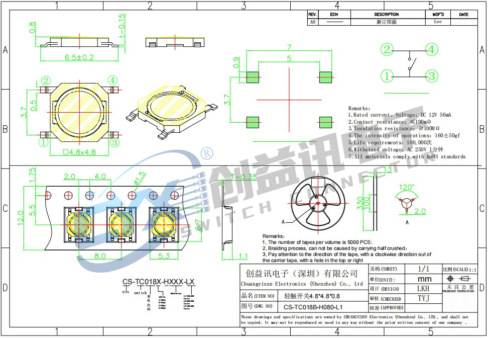 声明 :   关于产品规格、参数、寿命、工作温度、手感、防水等级等数据,只代表创益讯电子内部测试结果,如需详细测试方式,请联系创益讯业务人员。