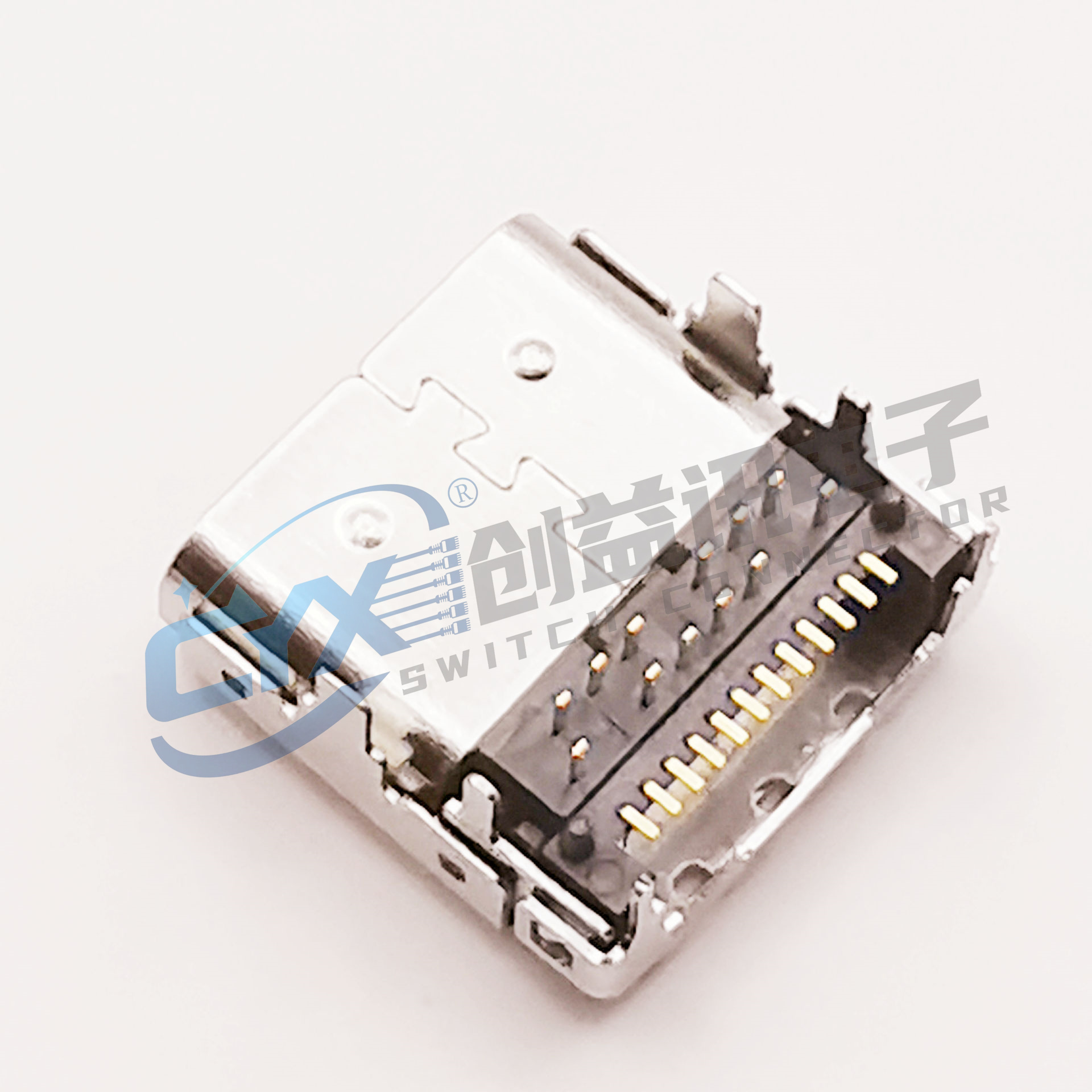 TYPE C 24P母座DIP+SMT 带上铁壳L=9.35 CHT-TS021R-H935-P24