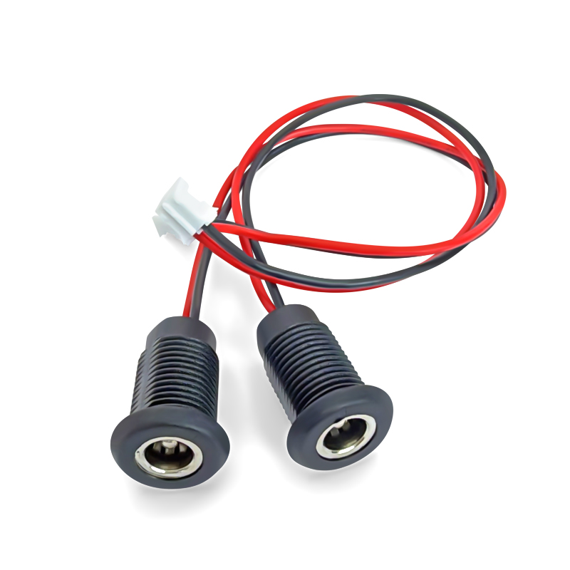 DC5521MM防水充电母座带线净水器电源插座圆孔接头直流螺纹充电座