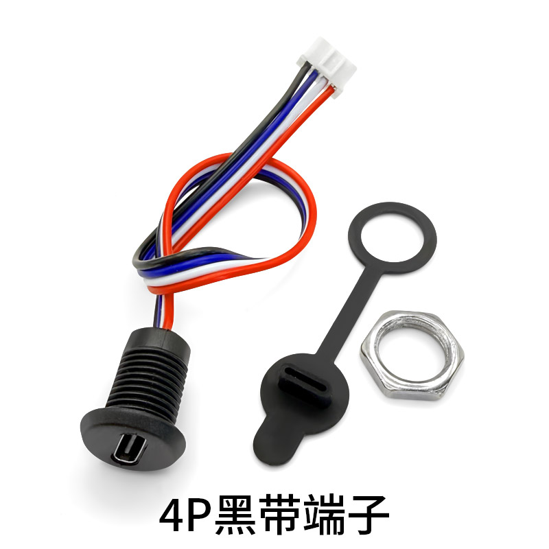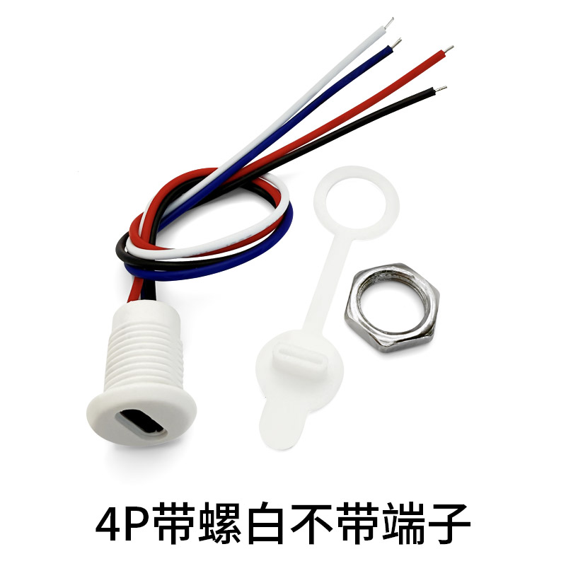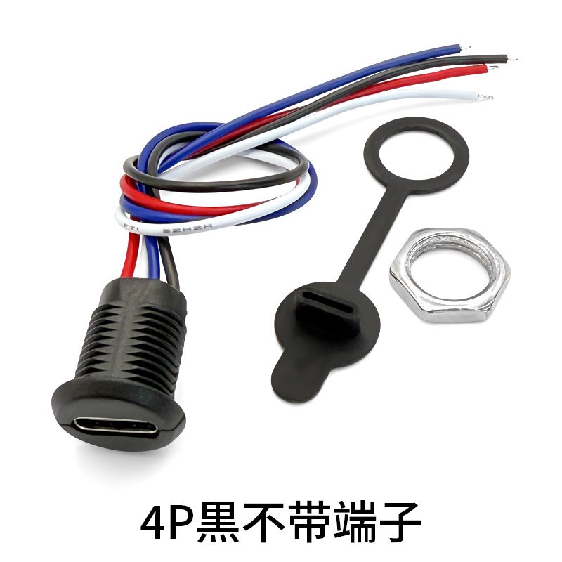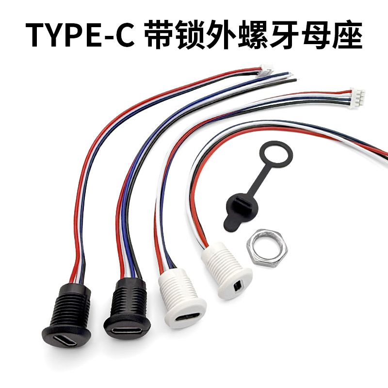 TYPE-C母座快充防水带锁外螺牙USB C口座子带数据手机充电 4P