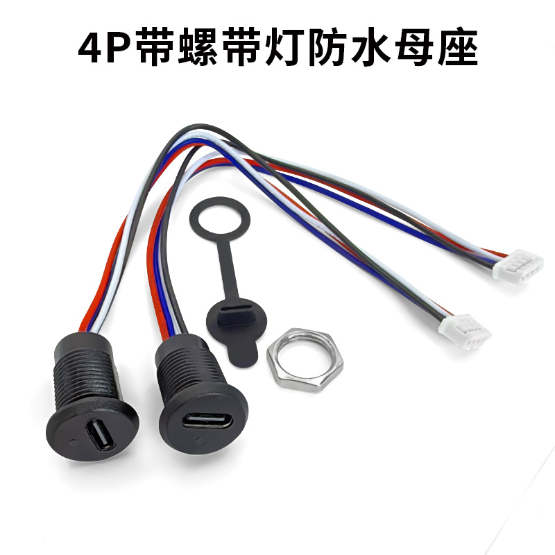 4P带锁外螺牙带灯黑带端子